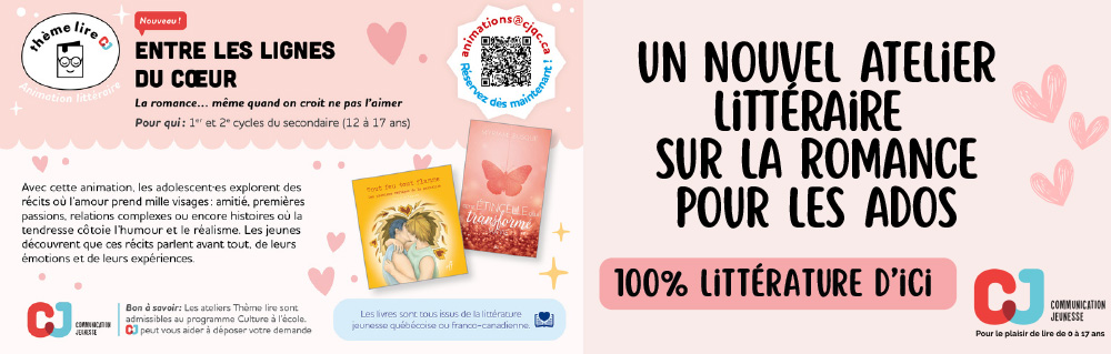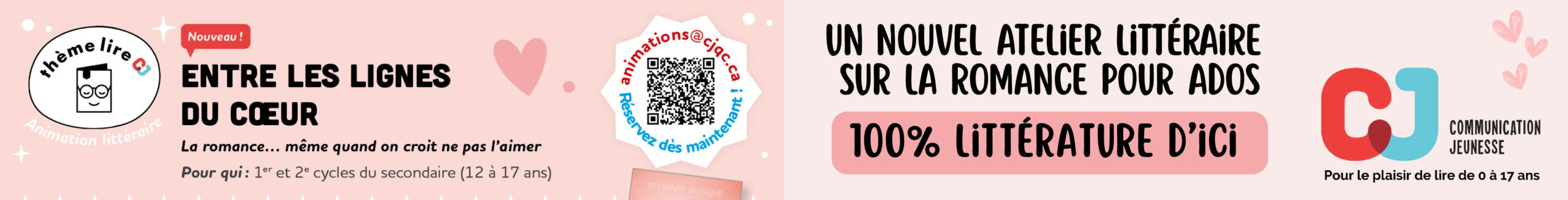 Si vous aimez ce que vous voyez ici, vous allez tripper sur notre infolettre pour les mentors! Abonnez-vous pour recevoir des recommandations de lecture thématique, des résumés décoincés, des articles inspirants, des activités littéraires engageantes et pleins d’autres trucs pour vous aider à transmettre aux jeunes votre amour de la lecture.